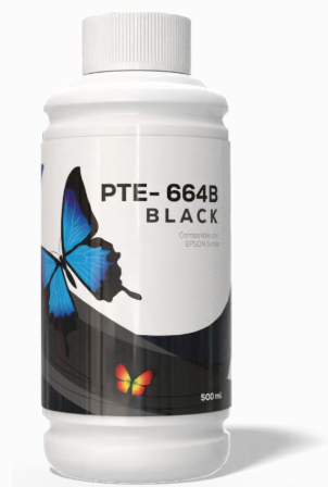 “El artículo con código PTE-664B-500ML es una botella de tinta compatible (genérica) de color negro con una capacidad de 500 mililitros, diseñada para rellenar las impresoras Epson EcoTank.