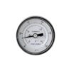 Termómetro bimetálico de acero inoxidable con tornillo recalibrador. Rango de -20 a 120, escala sencilla en grados Celsius. Carátula de 2″, conexión posterior de 1/4″ NPT, vástago 6”.