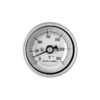 Termómetro bimetálico de acero inoxidable con tornillo recalibrador. Rango de 0 a 100, escala sencilla en grados Celsius. Carátula de 2″, conexión posterior de 1/4″ NPT, vástago 9”.