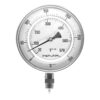 Termómetro bimetálico de acero inoxidable con tornillo re-calibrador. Rango de 0 a 100 celsius, escala dual en (Celsius y Fahrenheit). Carátula de 6 pulgadas, conexión inferior de 1/2″ NPT, vástago 9”.